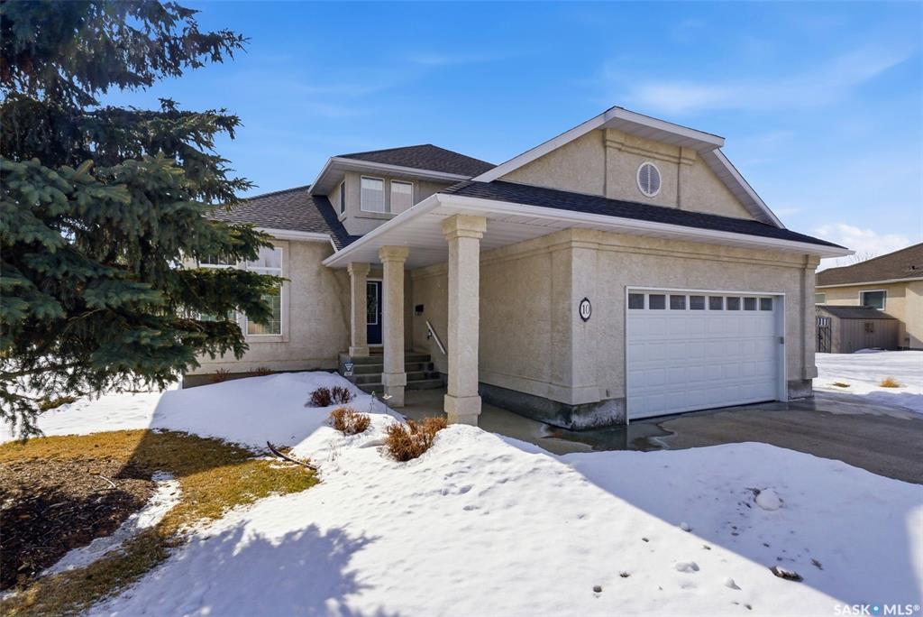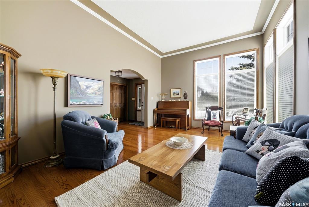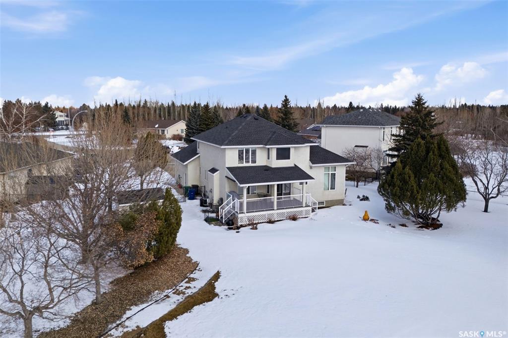 Located in the highly sought-after community of Emerald Park, this original-owner two-storey home by Westmount Homes offers 2,176 sq ft of thoughtfully designed living space and a 24x24 finished double attached garage. Set on an expansive and beautifully landscaped 0.58-acre lot backing the Aspen Links Golf Course, offering an exceptional combination of space, privacy, and scenic views. Upon entry the gleaming hardwood floors flow into a bright and inviting living room, highlighted by floor-to-ceiling windo...