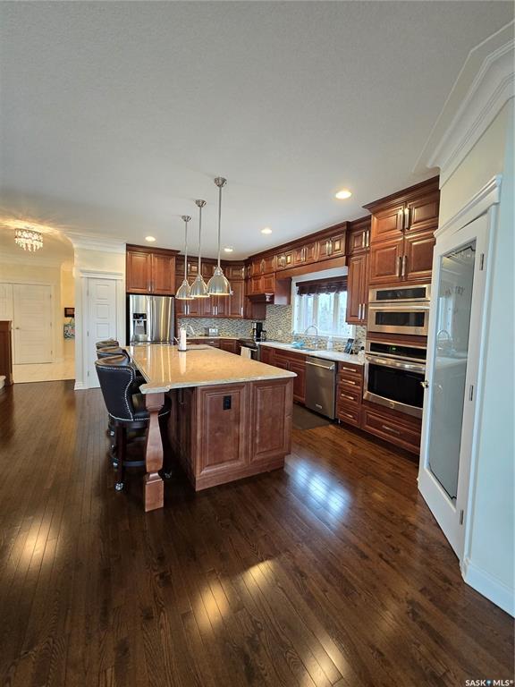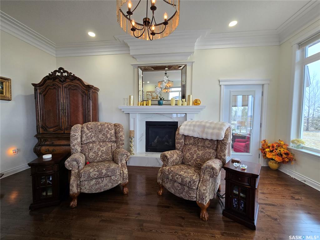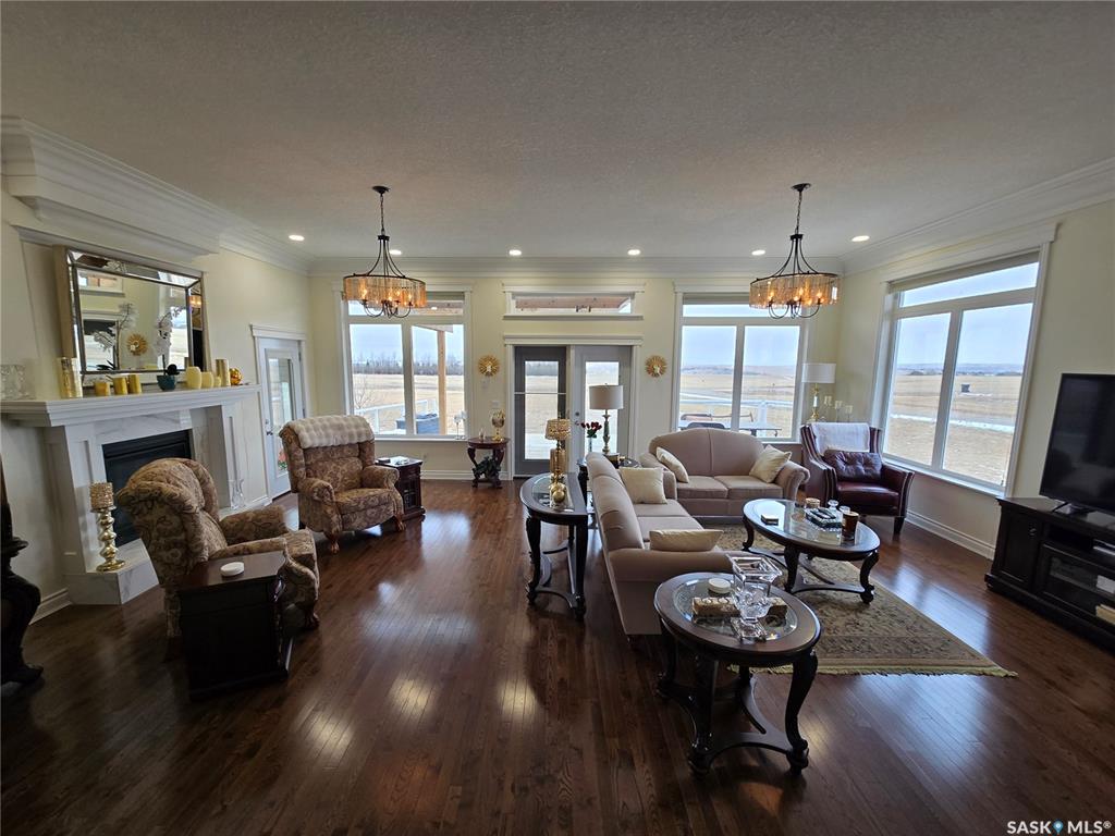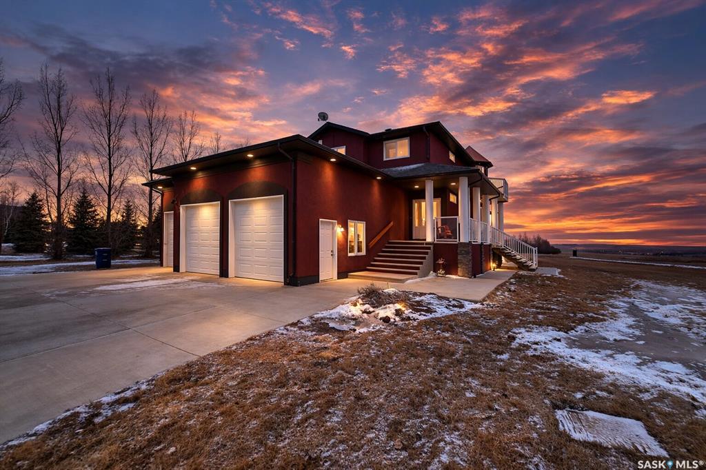 Set on 2.51 acres just outside Swift Current, this executive acreage was built with a clear vision — no expense spared and no detail overlooked. From the moment you step inside, the quality is obvious. A stunning entrance leads into a home finished with oak hardwood flooring, a high-end custom kitchen with quartz countertops and beautifully crafted cabinetry, and spaces designed to feel both elevated and comfortable. Built with both comfort and quality in mind, the home is double walled to enhance sound...