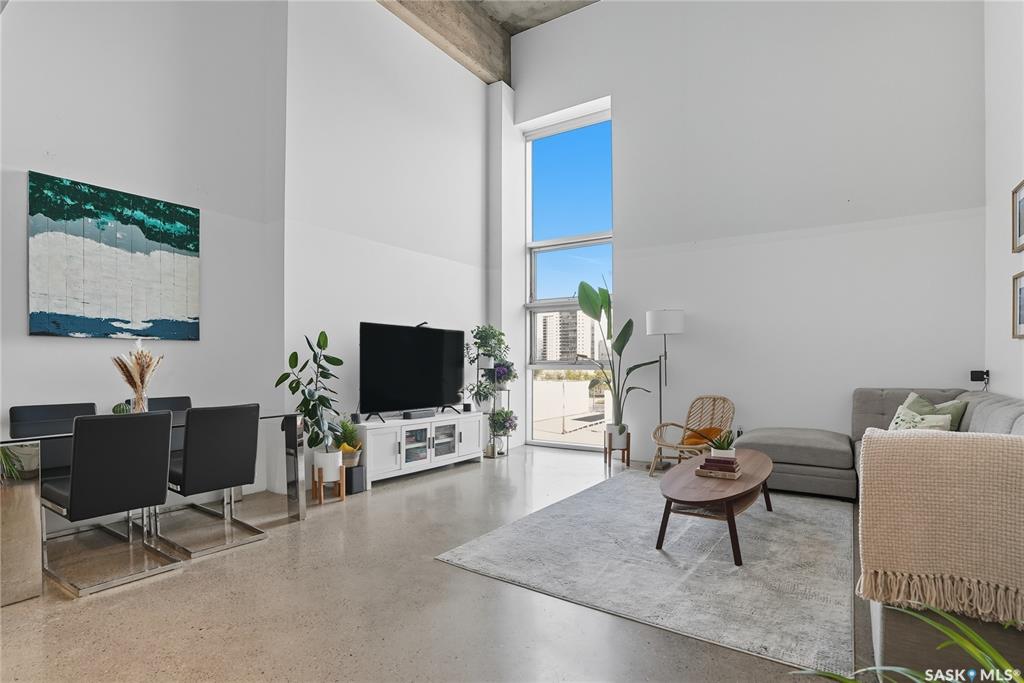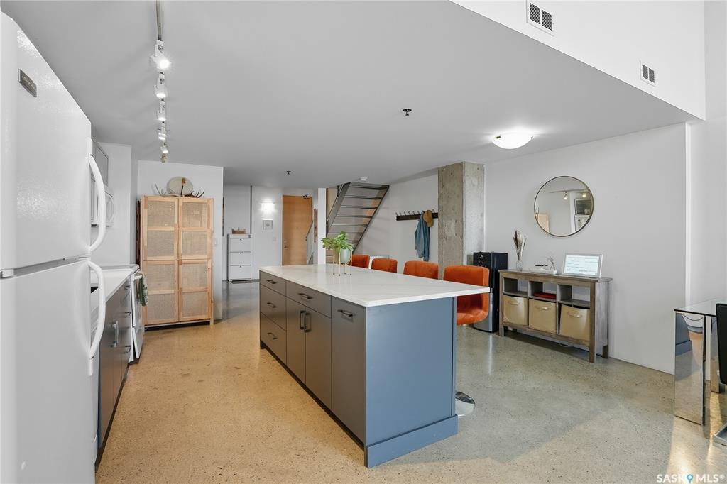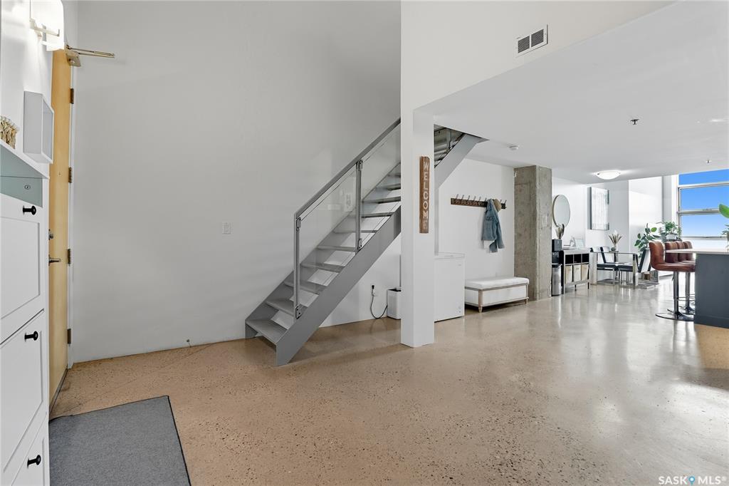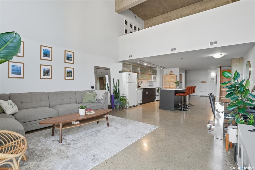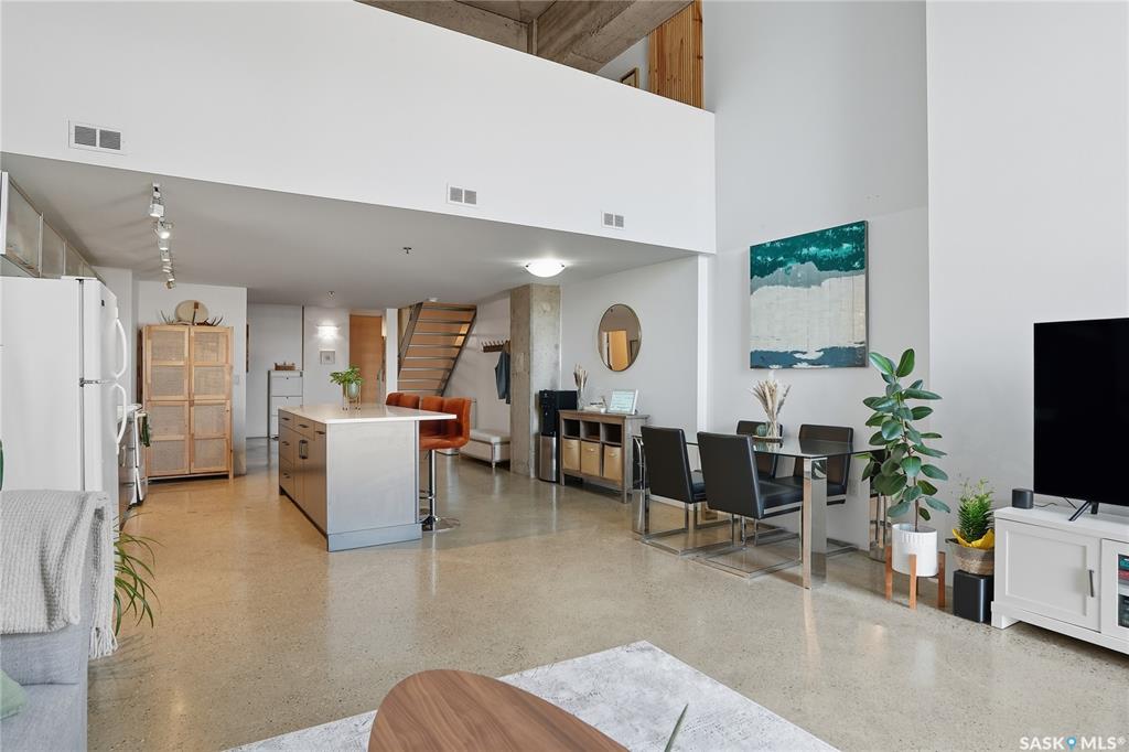 Welcome to this stunning East-facing loft located in the heart of Saskatoon's Central Business District. With 1,100 square feet of free-flowing living space, this 1-bedroom, 1.5-bath unit combines industrial charm with modern finishes, offering the perfect balance of comfort, style, and urban convenience. Soaring ceilings and a large window floods the space with natural light, enhancing the airy, open-concept layout. The kitchen has been beautifully upgraded with new quartz countertops and an oversized isl...