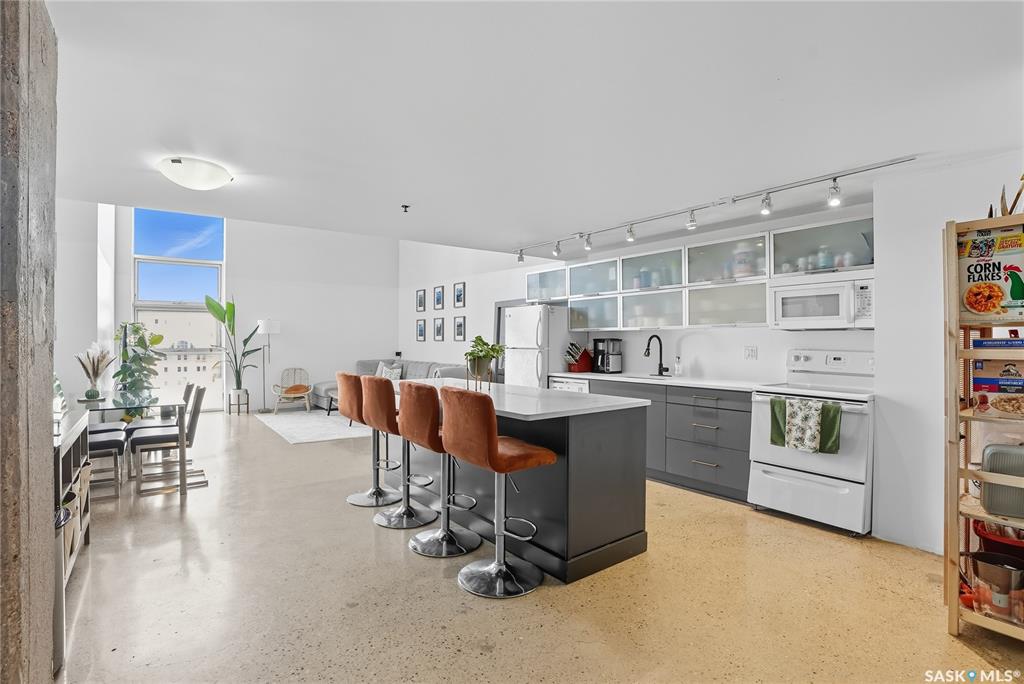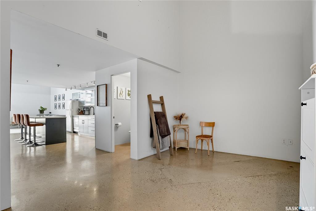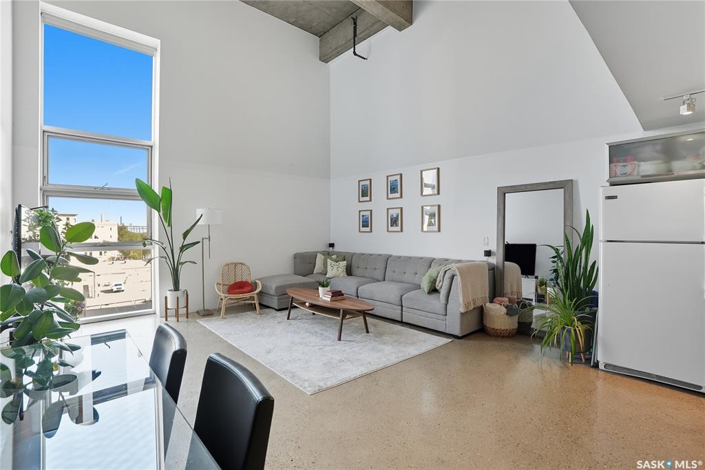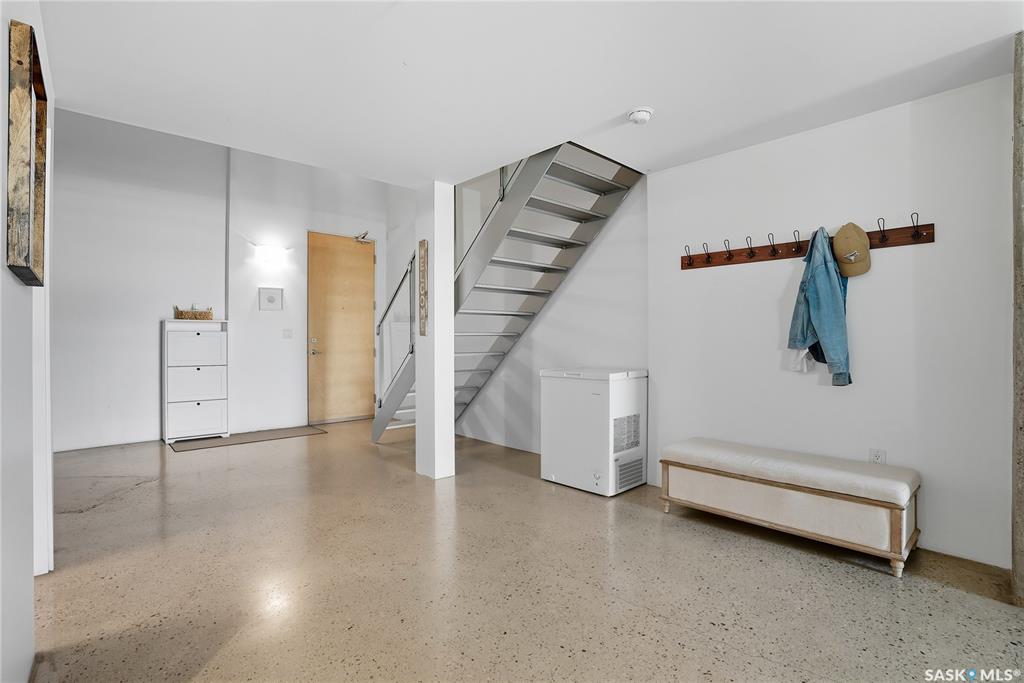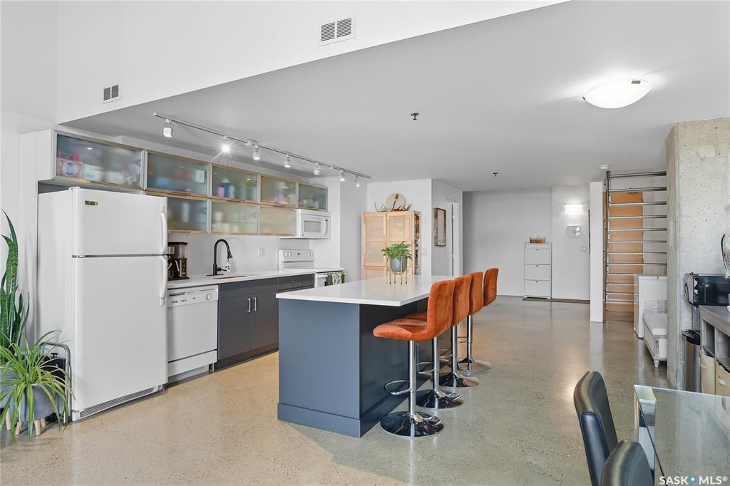 Welcome to this stunning East-facing loft located in the heart of Saskatoon's Central Business District. With 1,100 square feet of free-flowing living space, this 1-bedroom, 1.5-bath unit combines industrial charm with modern finishes, offering the perfect balance of comfort, style, and urban convenience. Soaring ceilings and a large window floods the space with natural light, enhancing the airy, open-concept layout. The kitchen has been beautifully upgraded with new quartz countertops and an oversized isl...