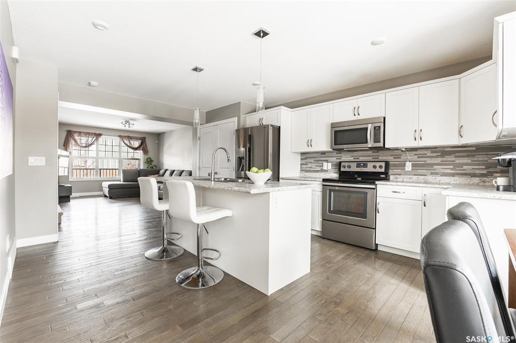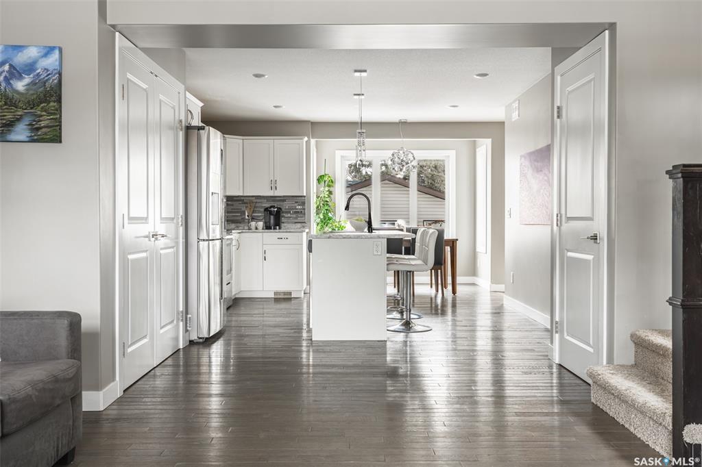Welcome to 158 Childers Crescent in Saskatoon's Kensington neighbourhood. This two storey home greets you with charming porch where you could sit and enjoy summer sunsets. Inside, the main floor is open concept. You can be sitting on the couch chatting to your partner while he is busy cooking the family dinner. Host friends at the dining room table overlooking your backyard. There’s also a 2 piece bathroom tucked discreetly around the corner. Up on the second floor you’ll find a west facing primary bedroom,...