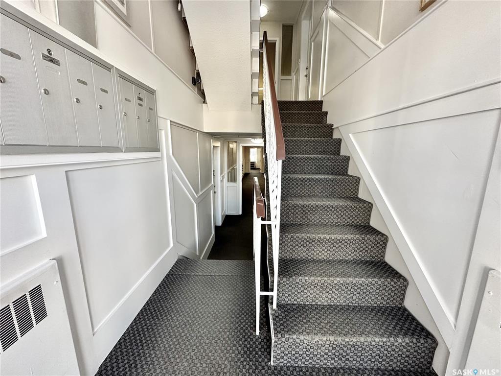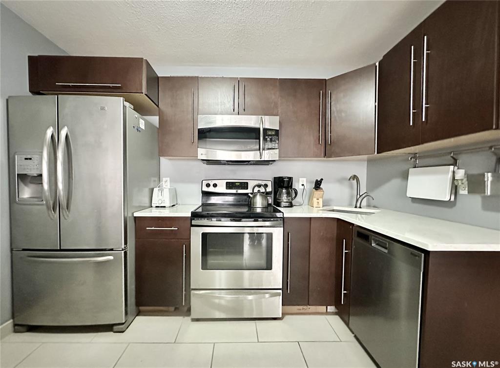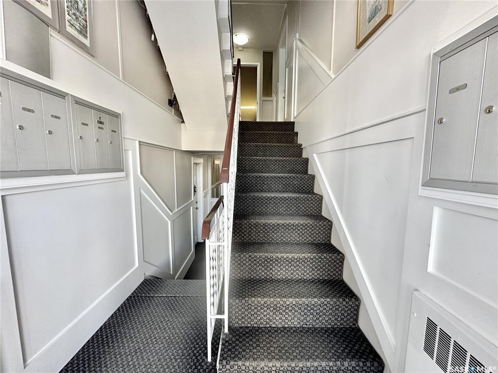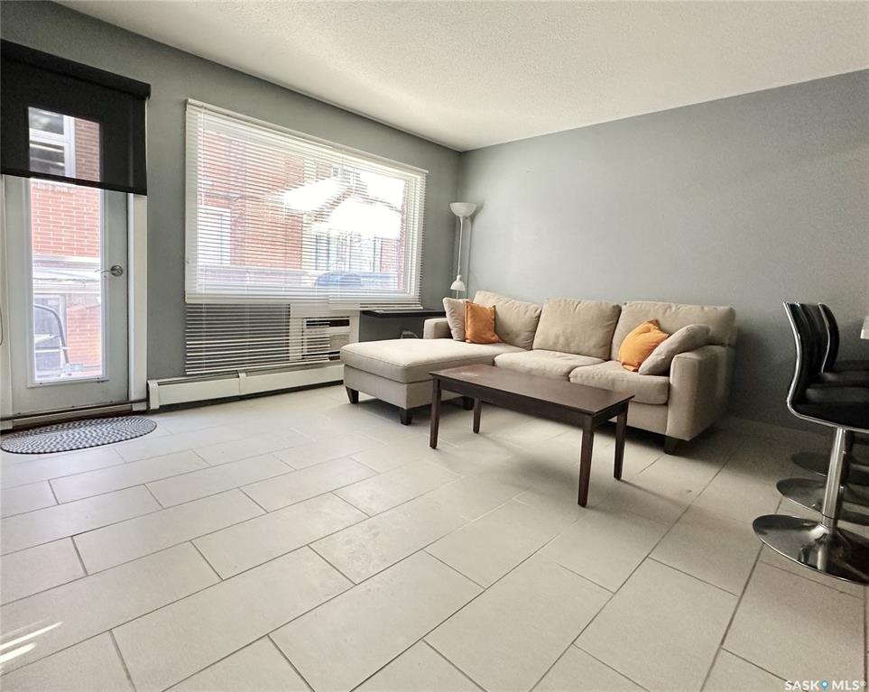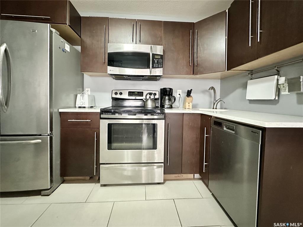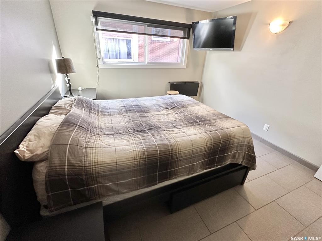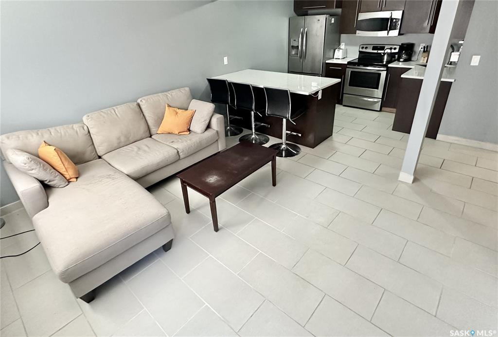 Walk to work or easy commute to any corner of Regina. Fabulous downtown condo. Clean quiet building. Located on the middle floor with a balcony and choice of in-suite laundry if desired. Shared laundry in lower level. Open kitchen and living room design. Espresso cabinetry with light stone counters and under-mount stainless steel sink. Stainless steel fridge, stove, built-in dishwasher and microwave hood fan all included. Extra large island has 6 storage drawers and room for stools. Cute balcony off the liv...