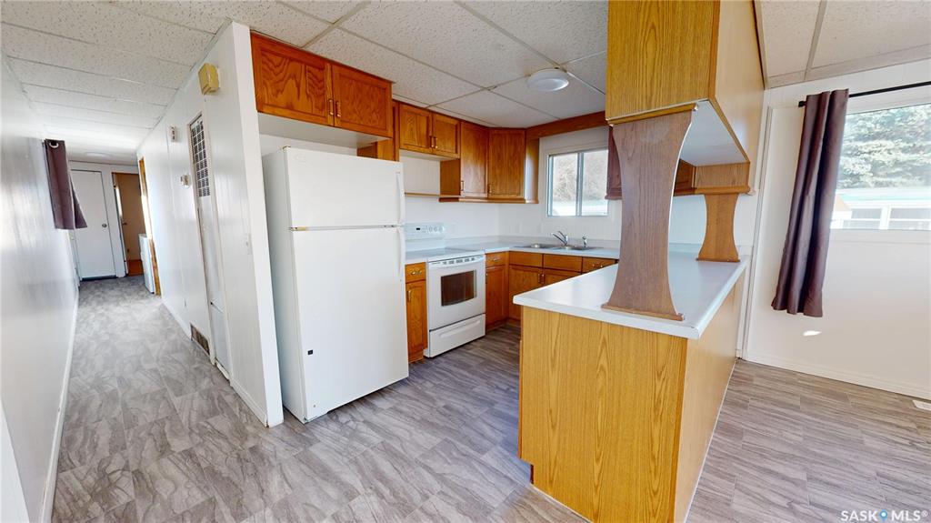 talk about AFFORDABLE living!! 211 railway avenue; situated in the quiet community of wawota — this 1978 mobile home was moved to town in 2012 and features 2 bedrooms, open concept kitchen, dining, living, a 1-4pc bathroom, and laundry all on one level...no need to worry about a basement on this one! Buyers will enjoy the comforts of just shy of 1000 SQFT of living space, updated linoleum flooring, freshly painted walls, good sized kitchen, updated furnace, and a few new windows, all situated on an OWNED 39...