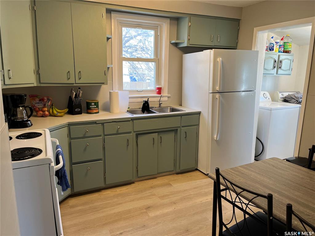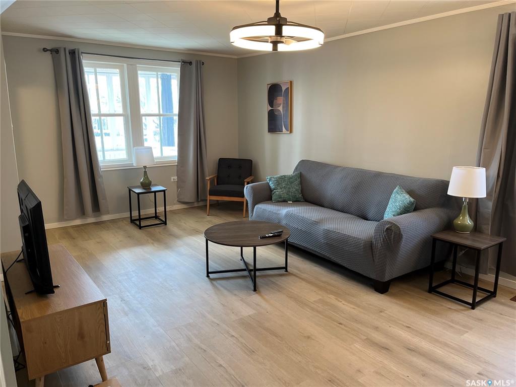 Put this storey and a half on your viewing list, situated right across the street from the school it has a lot of appeal. The home has had new flooring added to the main floor, fresh paint throughout the house, new baseboards, shingles that are not that old and a nice sized garage add to the property value. Gravelbourg has all services like a Hospital, schools, grocery store, restaurants, retail stores, gas station, pharmacy, curling and skating rink and much more. Hurry to book your private viewing today!!