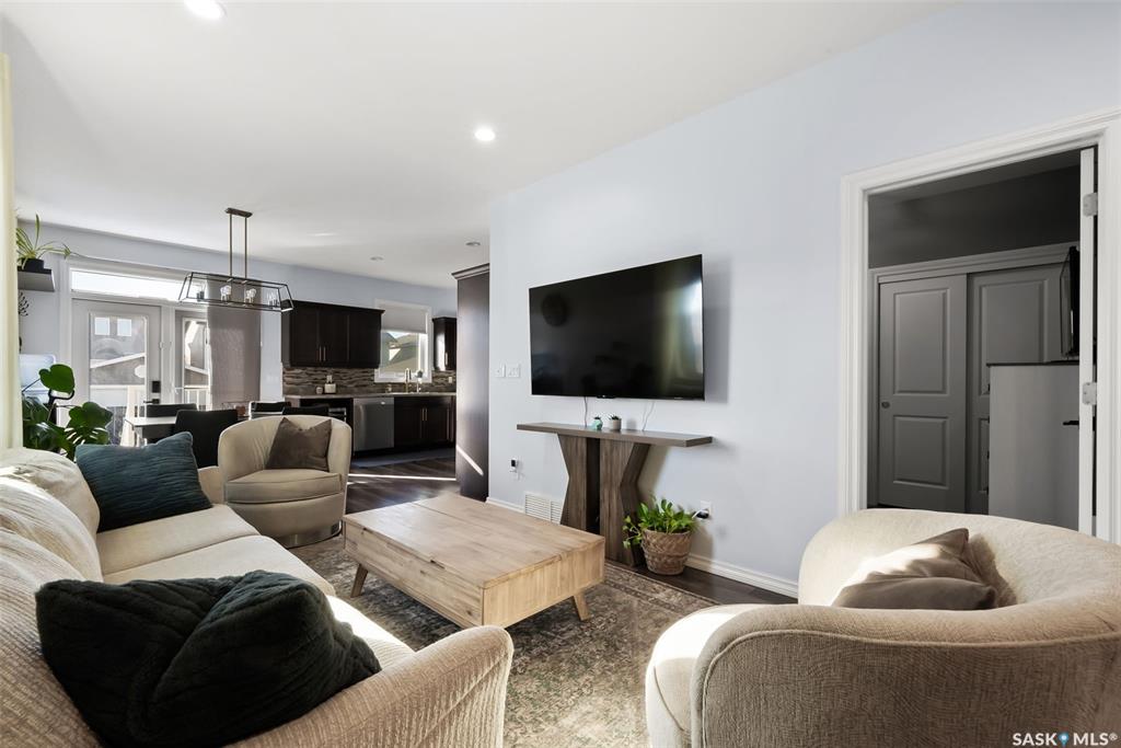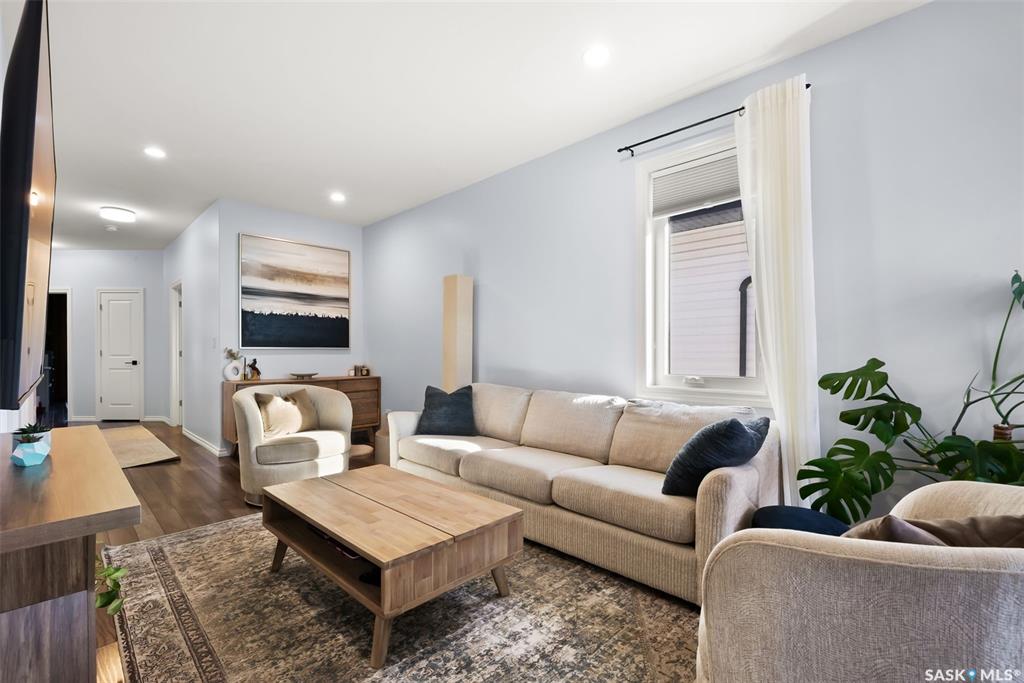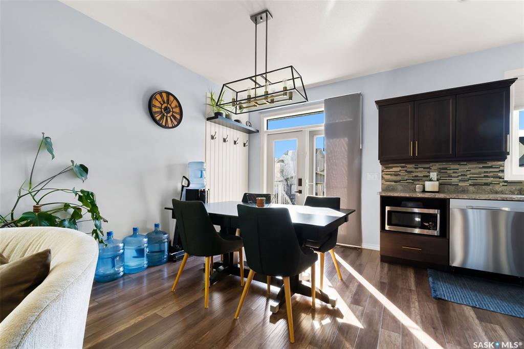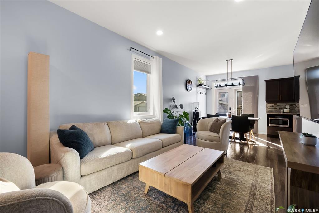 Welcome to your next home! — a beautifully styled and fully finished bi-level home in the desirable Hawkstone neighbourhood of Regina. This move-in-ready property offers comfort, function, and modern design throughout — perfect for families or those looking for a turnkey space. Step inside to a bright, inviting foyer with soaring ceilings and custom wood accent detailing. The open-concept main floor features a spacious living and dining area with plenty of natural light, trendy contemporary light fixture...