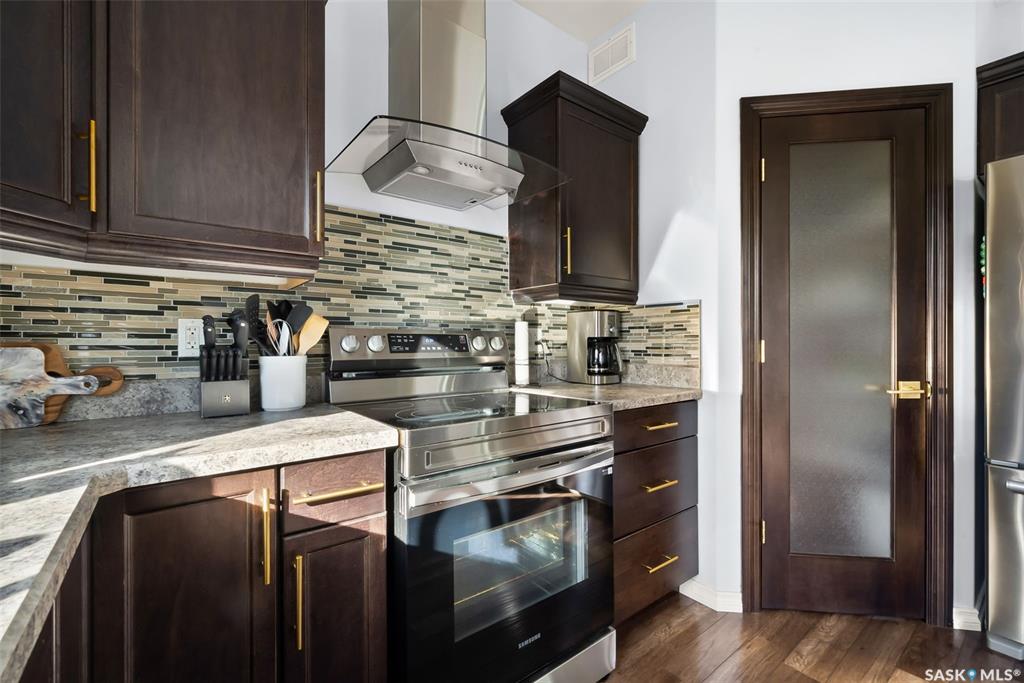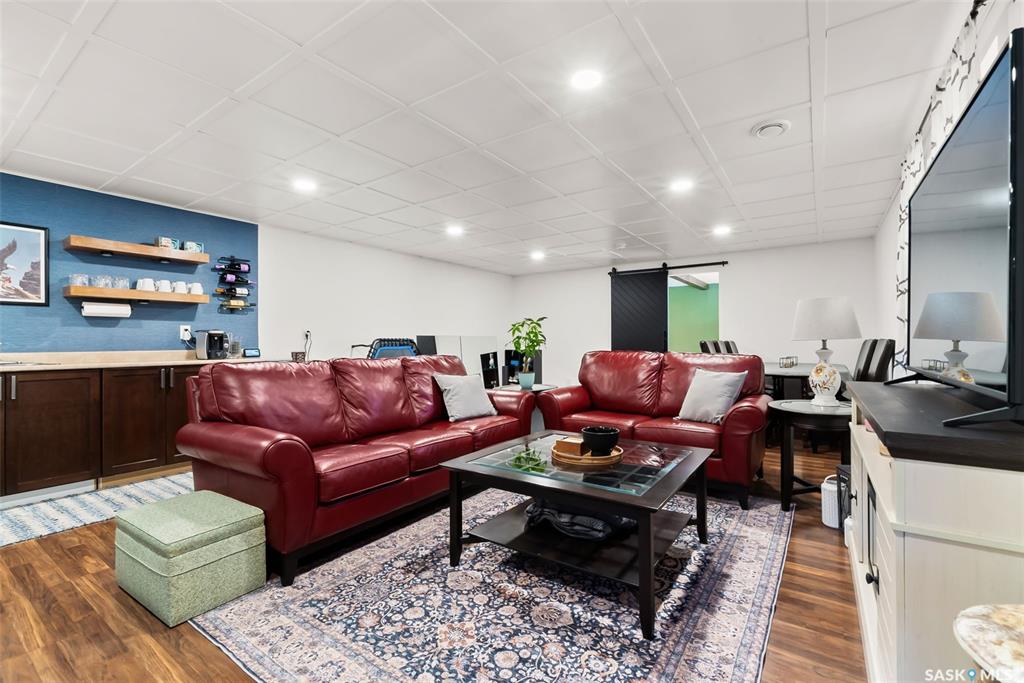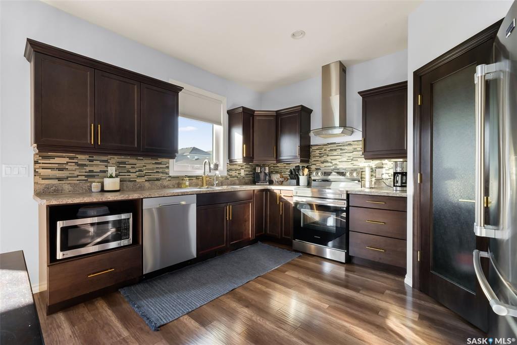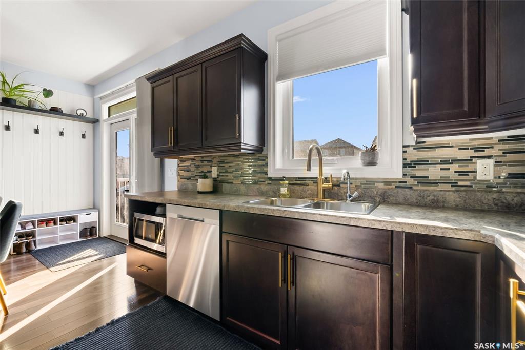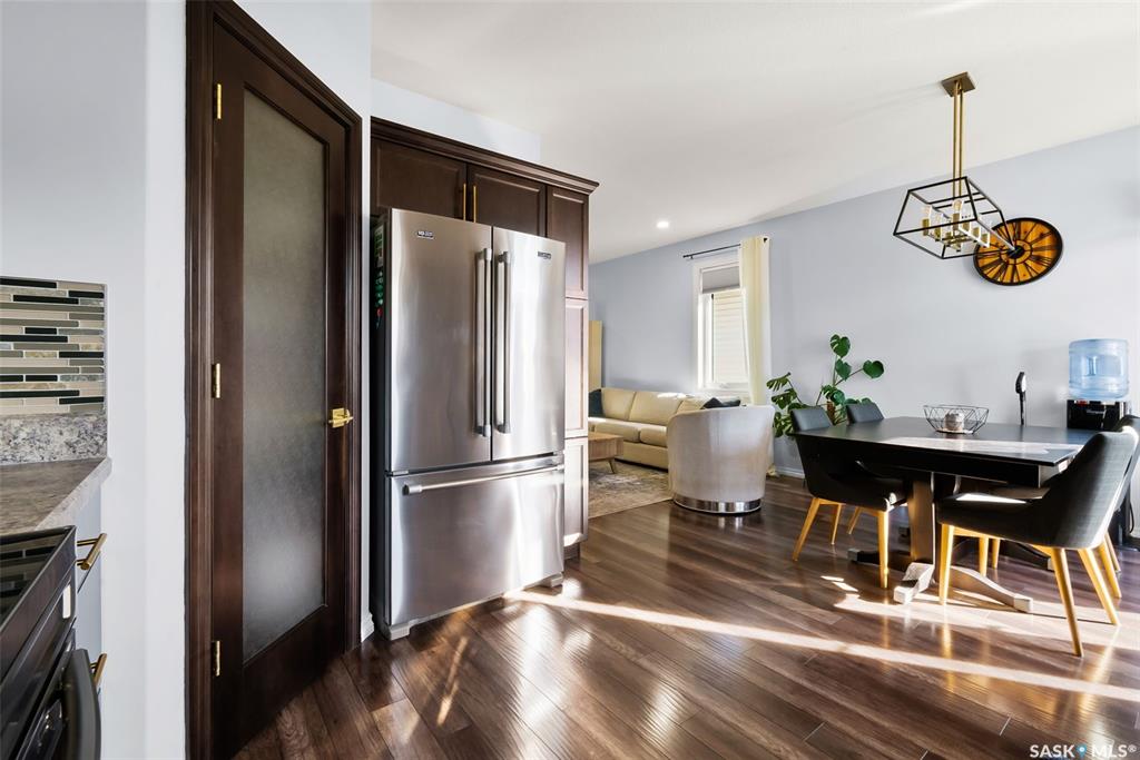 Welcome to your next home! — a beautifully styled and fully finished bi-level home in the desirable Hawkstone neighbourhood of Regina. This move-in-ready property offers comfort, function, and modern design throughout — perfect for families or those looking for a turnkey space. Step inside to a bright, inviting foyer with soaring ceilings and custom wood accent detailing. The open-concept main floor features a spacious living and dining area with plenty of natural light, trendy contemporary light fixture...