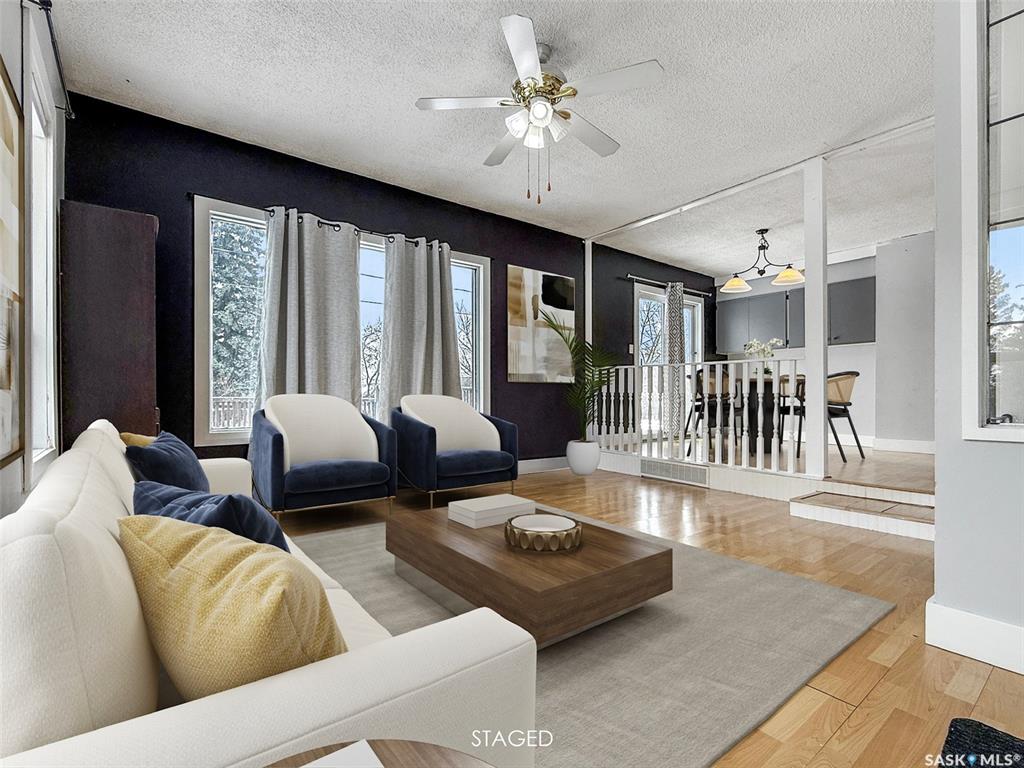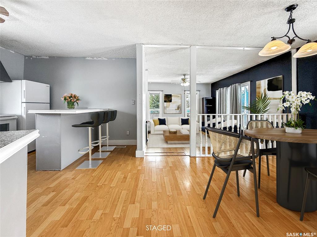 If you’ve been considering an acreage—or simply want a little more room to breathe—this affordable property in the welcoming community of Wymark is worth a look. Set on two mature lots, this well-kept bungalow offers bright, open-concept living with large windows that fill the home with natural light. A spacious entry porch provides excellent storage and leads into the generous living room. Adjacent is the dining area with access to the deck, and a modern kitchen complete with an island and seating—ideal...