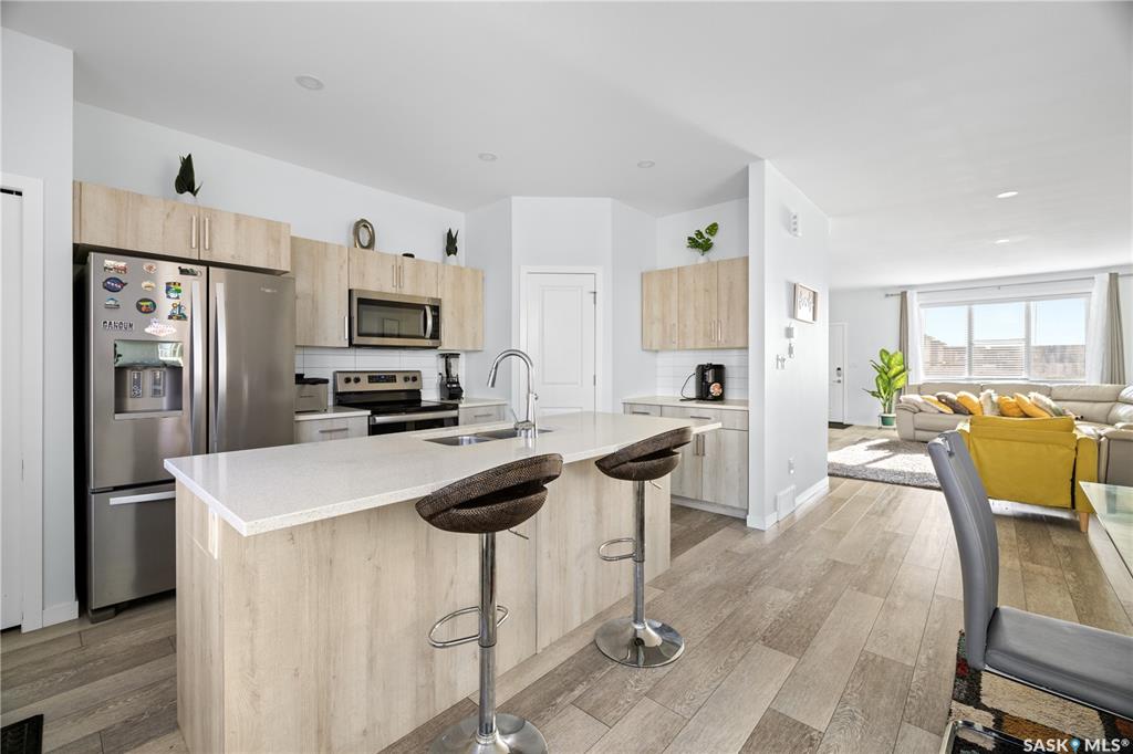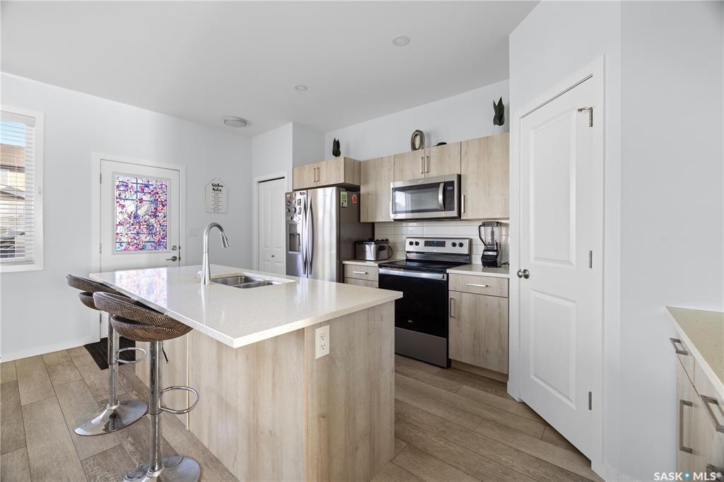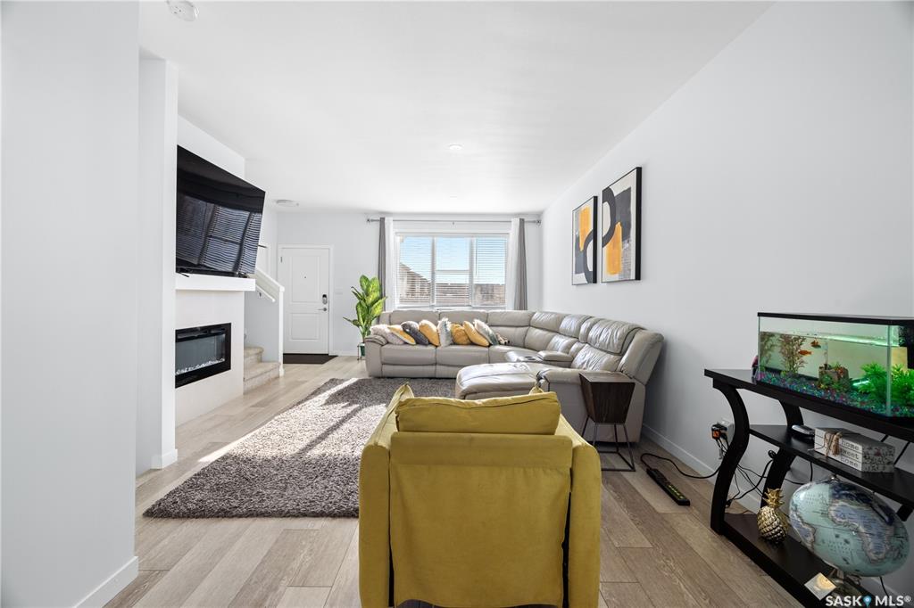 Unique layout and rare 2 storey townhouse measuring 1640 square feet located in The Towns, one of Regina's newest neighbourhoods, peaceful and pride itself for diversity. Main floor is beautifully laid out with open concept floor plan, 2pc bathroom, sizable living room with fireplace and dining. Kitchen fitted with sit-up island, corner pantry, stainless-steel appliances, plenty of quartz countertops, and abundant cabinetry. The 2nd level features good size bonus room for children play area and studies, lar...