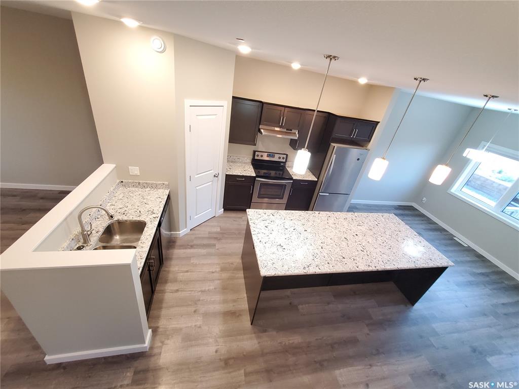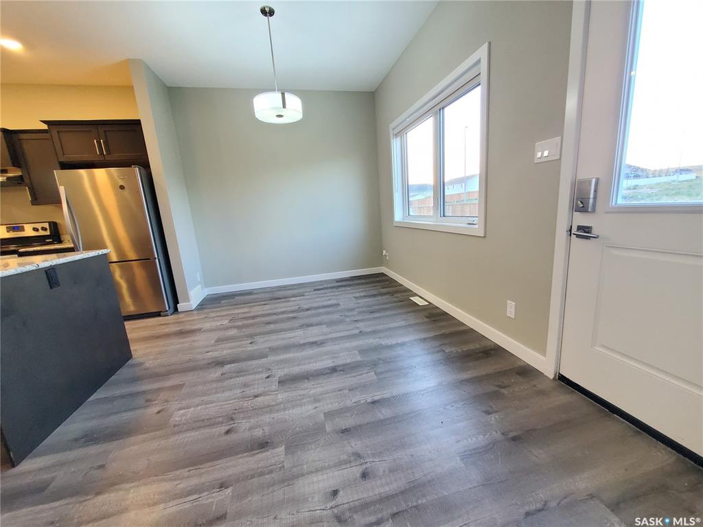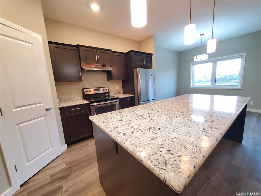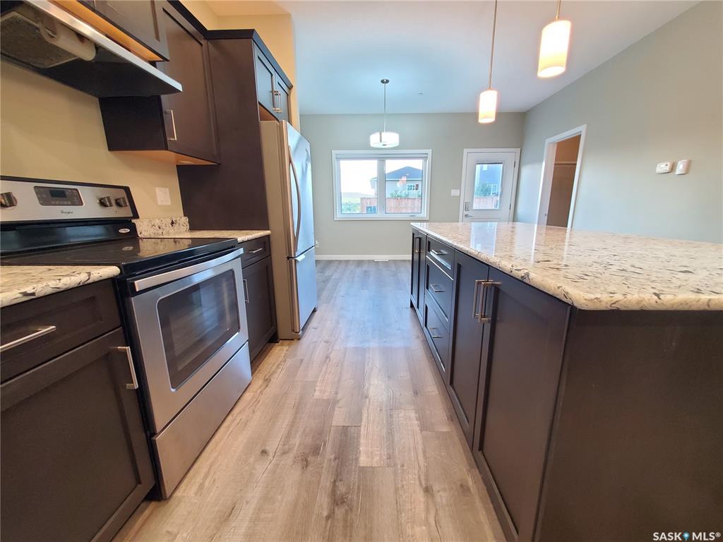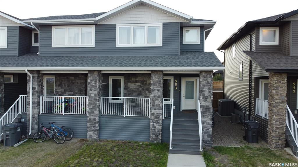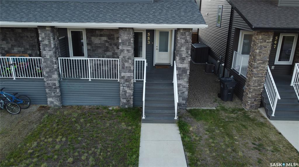 This standout end unit townhome at 553 Douglas Drive, Swift Current, combines quality craftsmanship, a prime Sask Valley location, and a layout designed for everyday ease. The elevated front deck looks out toward Ecole Centennial School, giving you a pleasant view before you even step inside. The main floor offers a smooth, open flow with a welcoming living room leading into a sharp-looking kitchen featuring dark, rich-looking cabinetry, stainless steel appliances, granite counters, a four-seat island, and ...